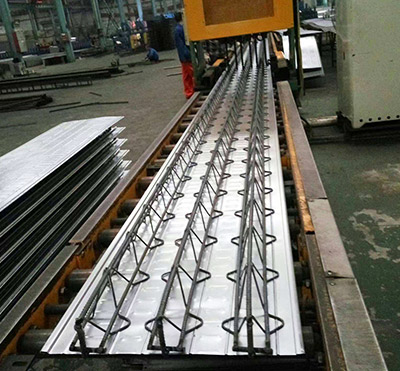 我公司在承重板的基礎上,對鋼筋桁架樓承板承重板進行了改進。鋼桁架在后臺加工時,可以預測其長度。采用鋼板焊接、硅烷化、純錳磷化、清洗干燥、鍍鋅等止銹工藝用阻銹膜進行包裹和密封。